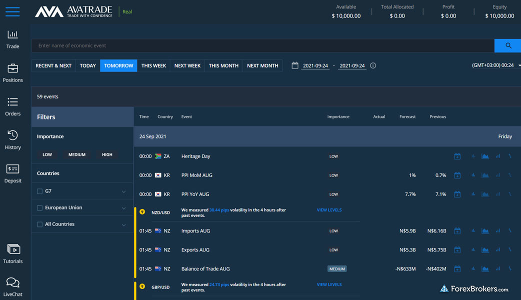 In comparison, AvaTrade provides news from reputable sources like Bloomberg and Reuters, enhancing its appeal for traders seeking reliable forex news. It also partners with Trading Central for technical analytics and offers sentiment-based trading tools. AvaTrade includes an economic calendar to keep traders informed of global events. Despite these strengths, AvaTrade's research tools earn it a slightly lower rating of 4 stars and a ranking of 34th in the Research category. Ultimately, both brokers provide essential research tools but cater to different needs, with eToro excelling in commentary and analytics, while AvaTrade shines in delivering timely market news.