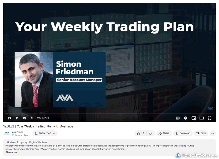 When comparing eToro and AvaTrade, both platforms excel in providing educational resources tailored for beginners, particularly in the areas of forex and CFDs. Each offers a rich selection of over 10 educational pieces such as articles, videos, and archived webinars covering essential trading subjects. Both brokers also host monthly online webinars to help clients deepen their understanding, and a searchable archive of past webinars is available for those looking to revisit these insights.