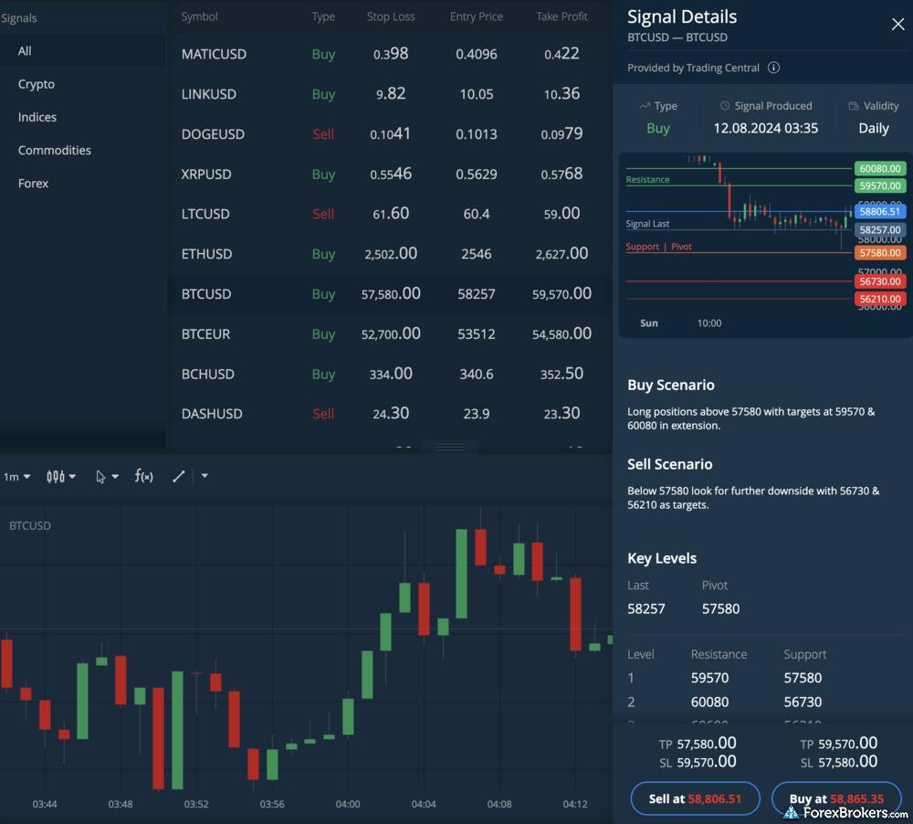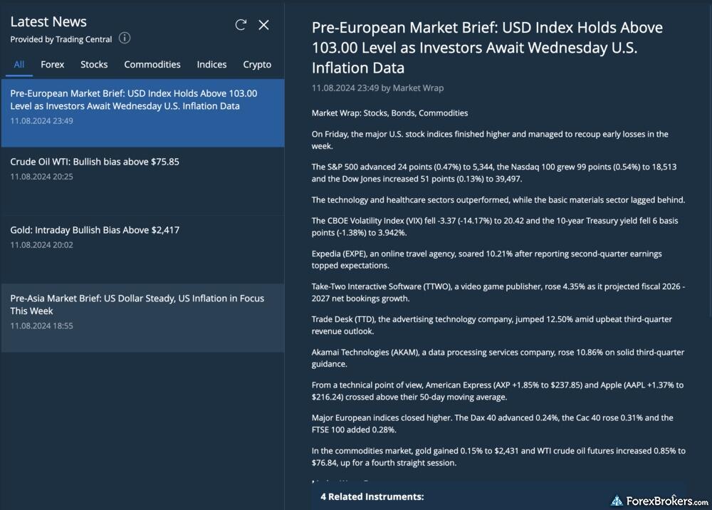 When considering market research offerings, eToro stands out with daily market commentary and a variety of tools. Although it lacks forex news from top-tier sources, eToro compensates with its partnership with Trading Central, providing technical analytics. Additionally, it offers a valuable sentiment-based trading tool and market insights from TipRanks. These features contribute to its high research rating of 4.5 stars, securing a rank of 13th among 63 brokers in the Research category, according to ForexBrokers.com.