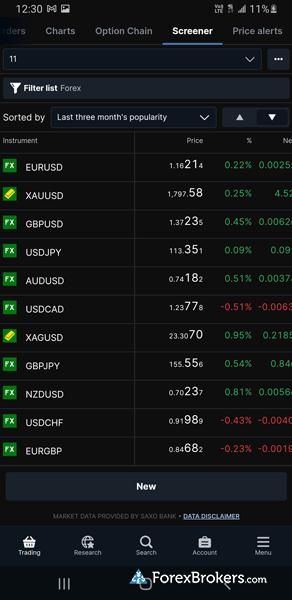 Check out a gallery of screenshots from Saxo's mobile trading app, taken by our research team during our product testing: