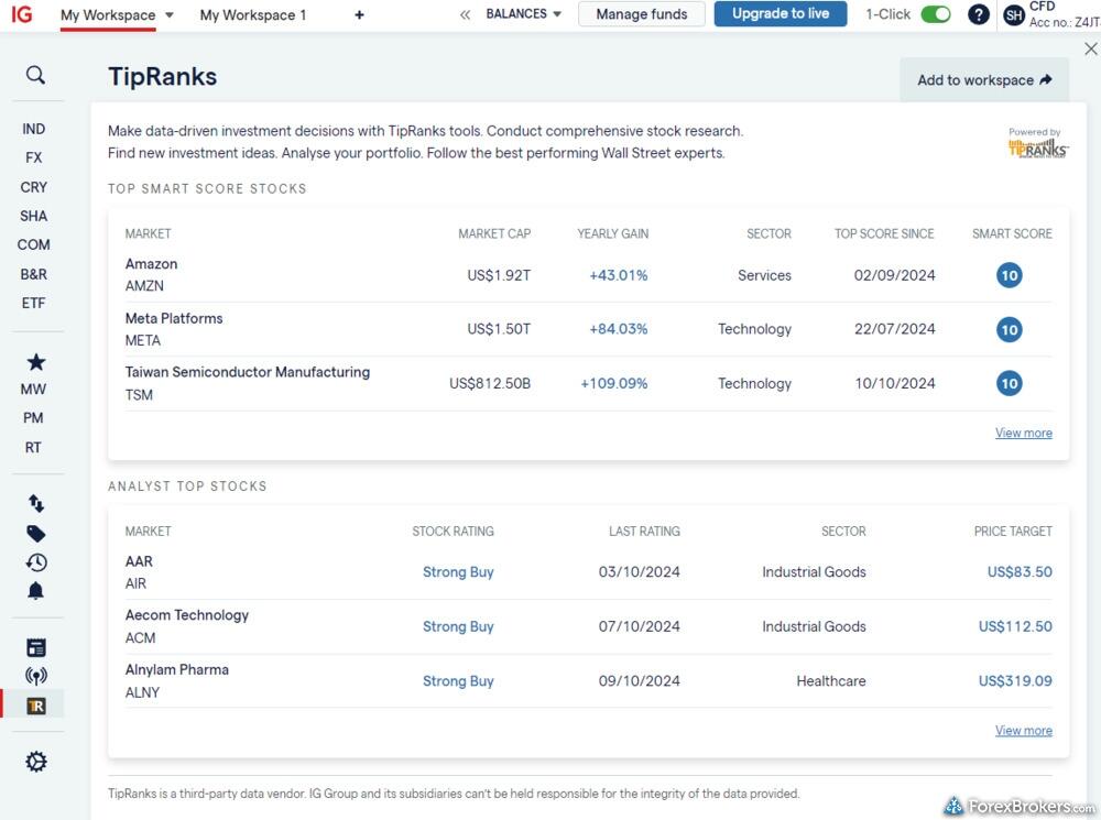 For those keen on customizing their trading experience, CMC Markets provides a broader range of options with 11 columns available for watchlists, surpassing IG's five. Moreover, CMC Markets supports copy trading, a feature absent from IG's offerings. Despite these differences, both brokers have earned a five-star rating for their trading platforms and tools. Ranking-wise, IG holds the #2 spot among 63 brokers evaluated by ForexBrokers.com, while CMC Markets follows closely at #4. Each broker allows traders to execute trades directly from stock charts, underscoring their commitment to empowering users with functional and efficient trading solutions.