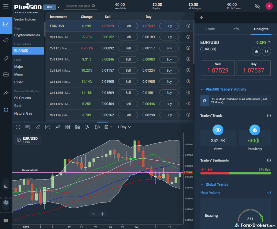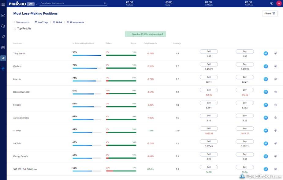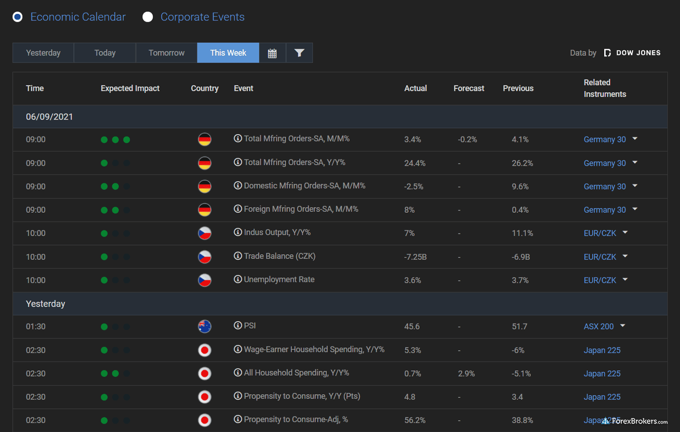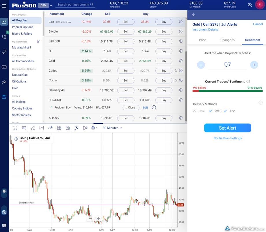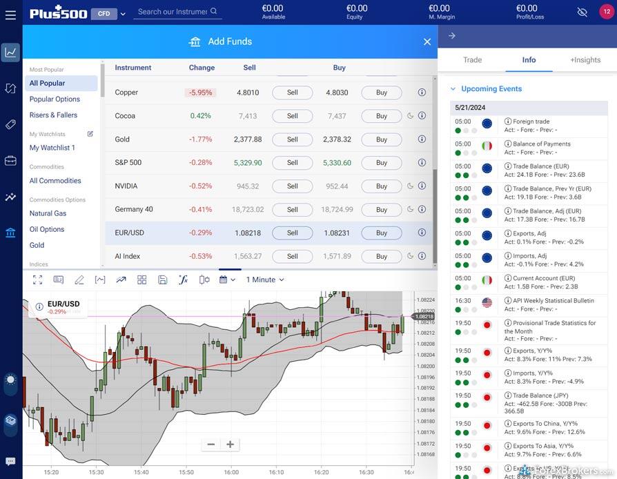 For those considering an online broker with strong market research offerings, both eToro and Plus500 provide a competitive edge in several areas. Both platforms offer daily market commentary and feature sentiment-based trading tools that display the ratio of long or short positions on various instruments. When it comes to technical analysis, both eToro and Plus500 integrate tools from Trading Central, enhancing traders’ insights significantly. Additionally, they each offer an economic calendar that keeps users informed on current and future global news events, aiding in strategic trading decisions.