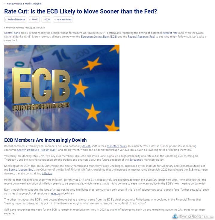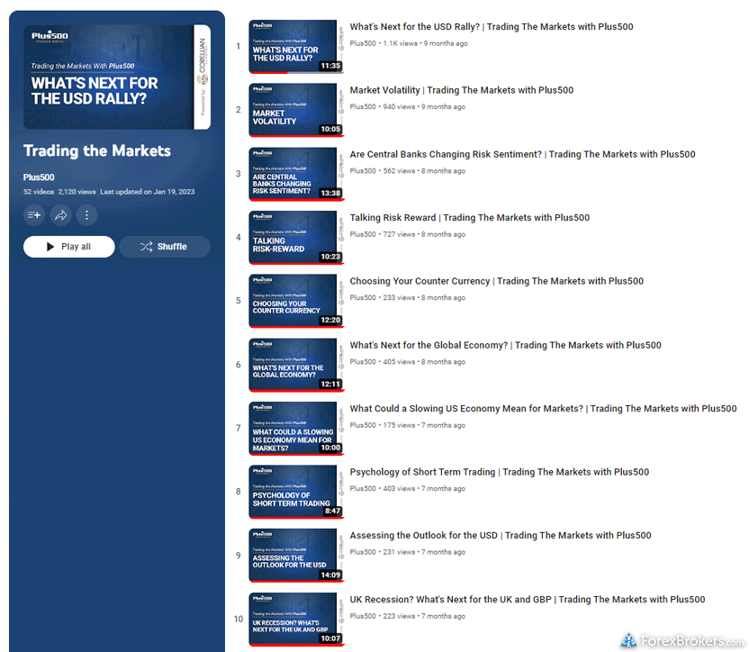 Similarly, Plus500 makes significant efforts to educate its users, offering at least 10 educational pieces centered on forex and CFDs. They cater to beginners with an array of videos and host monthly webinars complete with previously recorded sessions for ongoing learning. Although Plus500 lacks a detailed investor dictionary, it still provides advanced educational content for more experienced traders. Despite this shortfall, Plus500 earns a solid 4.0-star educational rating and is positioned at #31 in ForexBrokers.com's rankings, reflecting its dedication to supporting traders at all levels while illustrating its areas for growth compared to eToro’s offerings.
