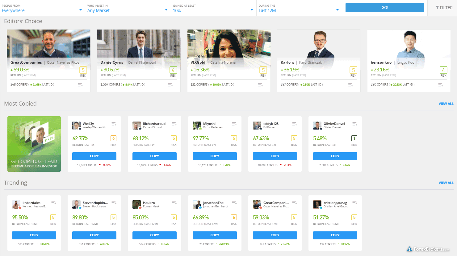 eToro is a winner for its easy-to-use copy-trading platform, where traders can copy the trades of experienced investors – or receive exclusive perks for sharing their own trading strategies.