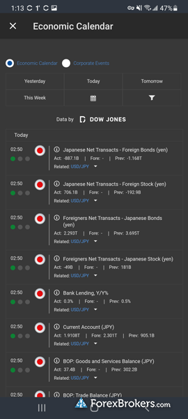 | Mobile Economic Calendar | No | Yes |