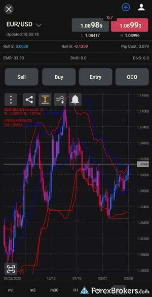 When comparing the mobile trading apps of FOREX.com and FXCM, both offer a comprehensive suite of features that cater to the needs of both iPhone and Android users. They provide essential functionalities such as stock or forex price alerts and watchlist symbol syncing, which allows seamless updates between your mobile app and online account. However, FOREX.com slightly edges out FXCM with a collection of 88 technical studies available for its charting tools compared to FXCM's 59. Both platforms also allow users to draw trendlines and view multiple time frames, making chart analysis straightforward. Furthermore, any drawings made are saved automatically on both apps, enhancing user experience.