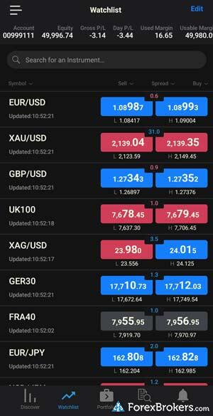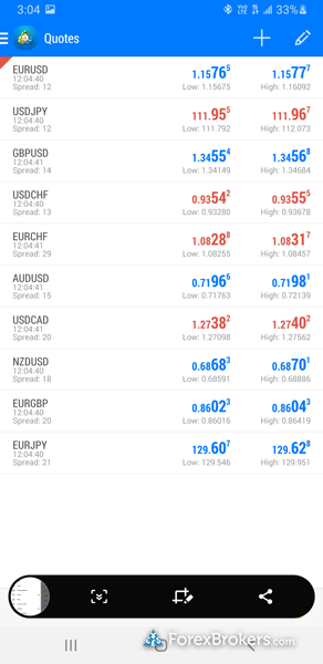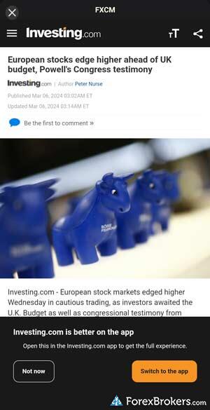 For those interested in creating watchlists with real-time quotes, both FOREX.com and FXCM apps cover this feature effectively. However, in terms of user ratings, FOREX.com's app holds a slight advantage with a 5-star rating, while FXCM has 4.5 stars. Evaluations by ForexBrokers.com place FOREX.com in the spotlight at rank #3 out of 63 brokers for mobile trading apps, whereas FXCM is positioned at #16. These distinctions highlight FOREX.com's strong performance in mobile trading apps, making it an appealing choice for traders who value a highly rated and capable mobile trading experience.