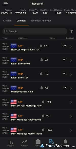 | Mobile Economic Calendar | Yes | Yes |