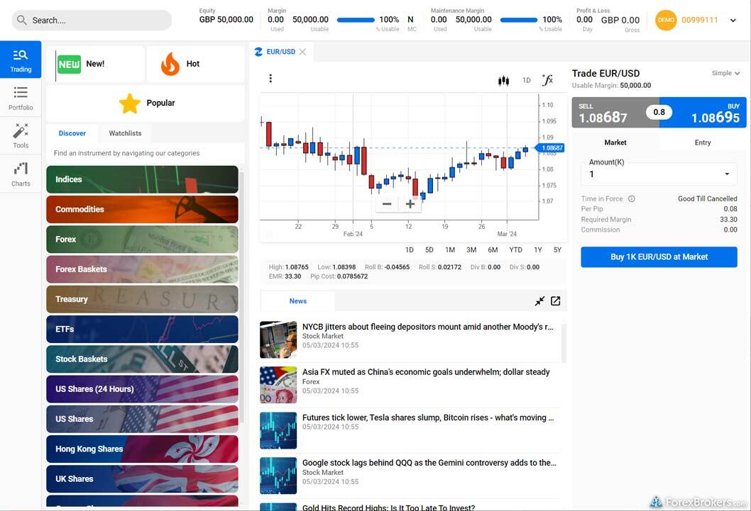 When comparing FOREX.com and FXCM, both platforms provide a comprehensive suite of trading options that cater to different trading needs. They each offer proprietary platforms as well as popular third-party options like MetaTrader 4 (MT4), with FOREX.com also supporting MetaTrader 5 (MT5). Both brokers provide Windows-based desktop platforms and web-based trading for added flexibility. In addition, each platform offers a virtual demo account for risk-free trading practice. While FOREX.com does not offer copy trading services, FXCM provides this feature along with integration with ZuluTrade, appealing to traders interested in social trading networks.