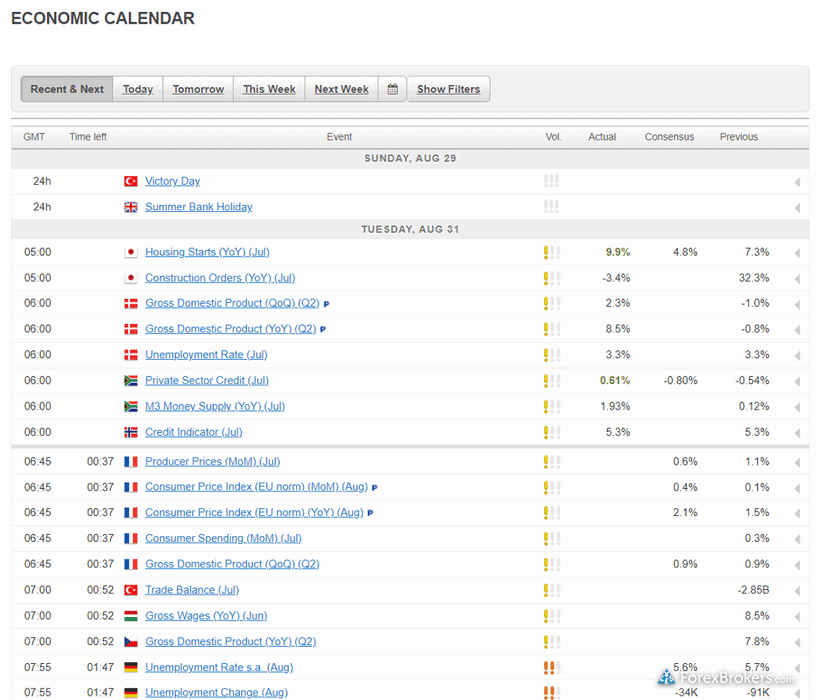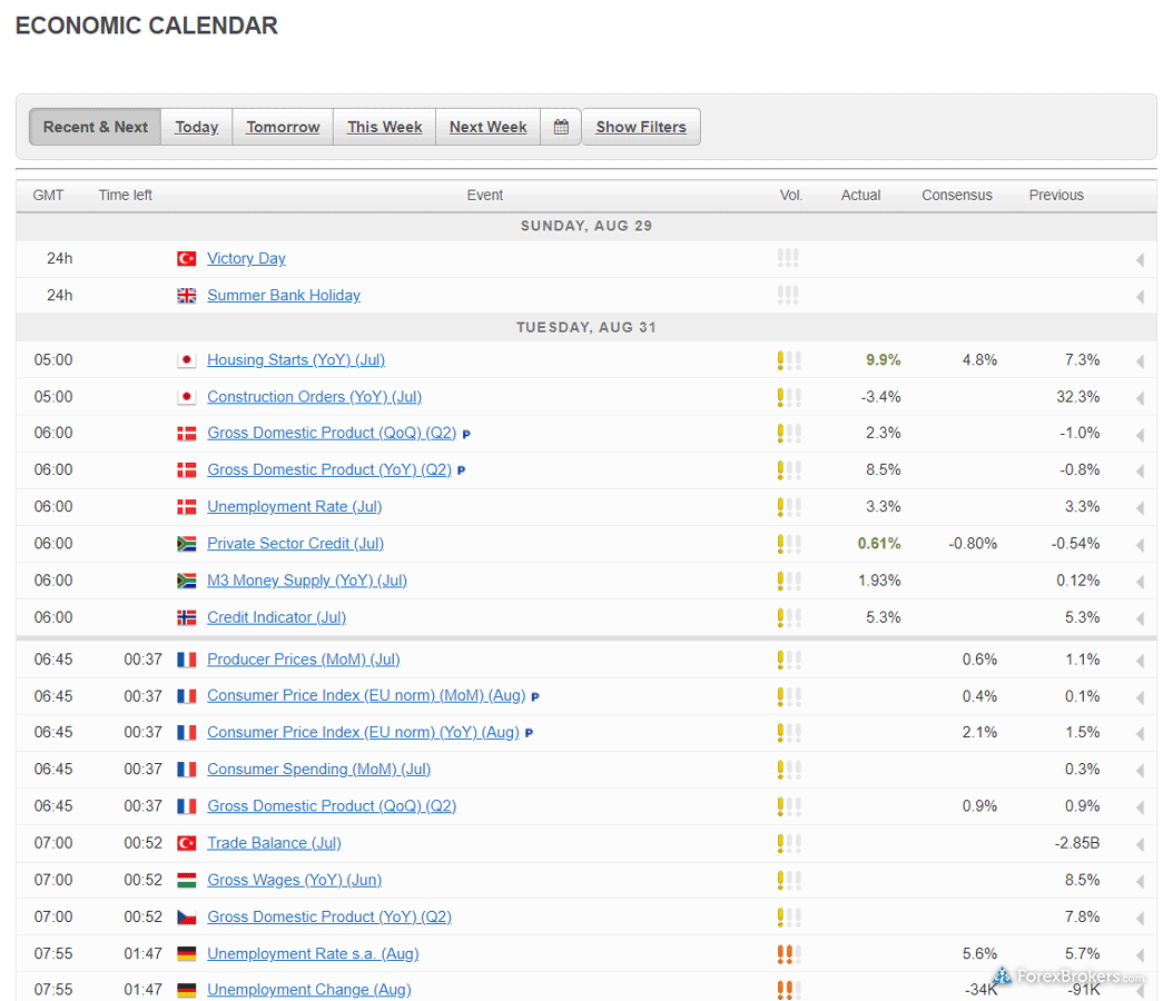 | Economic Calendar | Yes | Yes |