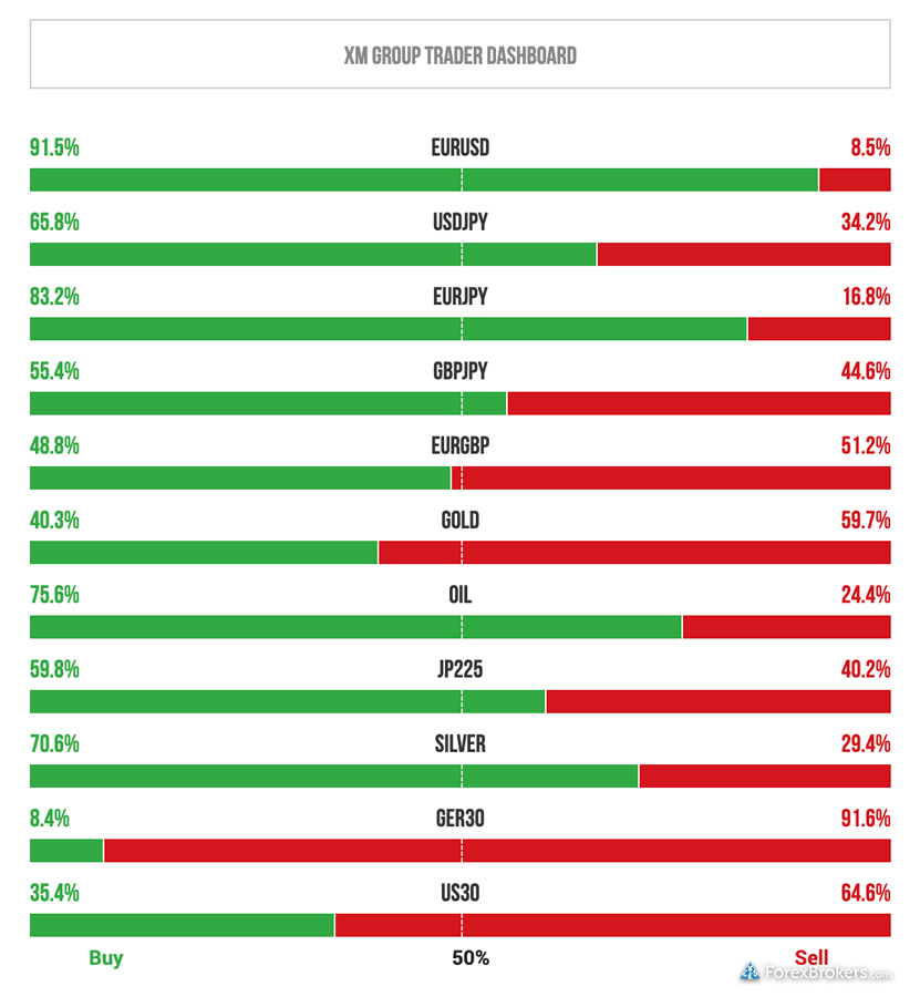 When comparing the market research offerings of XM Group and FP Markets, both brokers provide daily market commentary and keep traders updated with forex news from prestigious sources such as Bloomberg and Reuters. Additionally, each broker offers tools from Trading Central, including Technical Analytics, and both offer sentiment-based trading tools that display the ratio of long and short positions across various instruments. XM Group and FP Markets also provide an economic calendar that highlights important global news and events affecting the markets. However, neither broker includes research tools from Acuity Trading or resources from TipRanks in their market research arsenal.