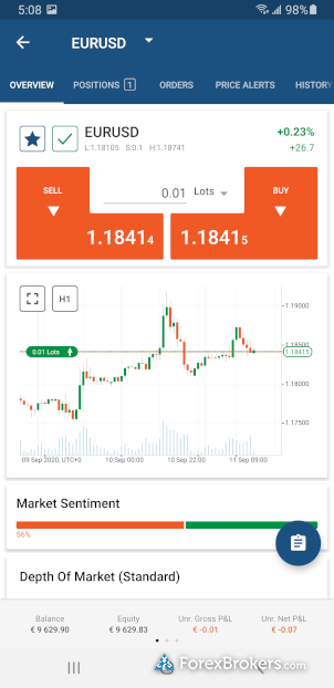 Pepperstone and IC Markets both offer strong mobile trading apps compatible with iPhone and Android devices. Users of both brokers can enjoy stock and forex price alerts, the ability to draw trendlines on charts, view multiple time frames, and create watchlists with real-time quotes. Additionally, each app provides 30 technical studies for charting and saves your chart drawings automatically. However, Pepperstone stands out with its watchlist symbol syncing feature, ensuring seamless integration between the mobile app and online account, a convenience that IC Markets does not currently offer.