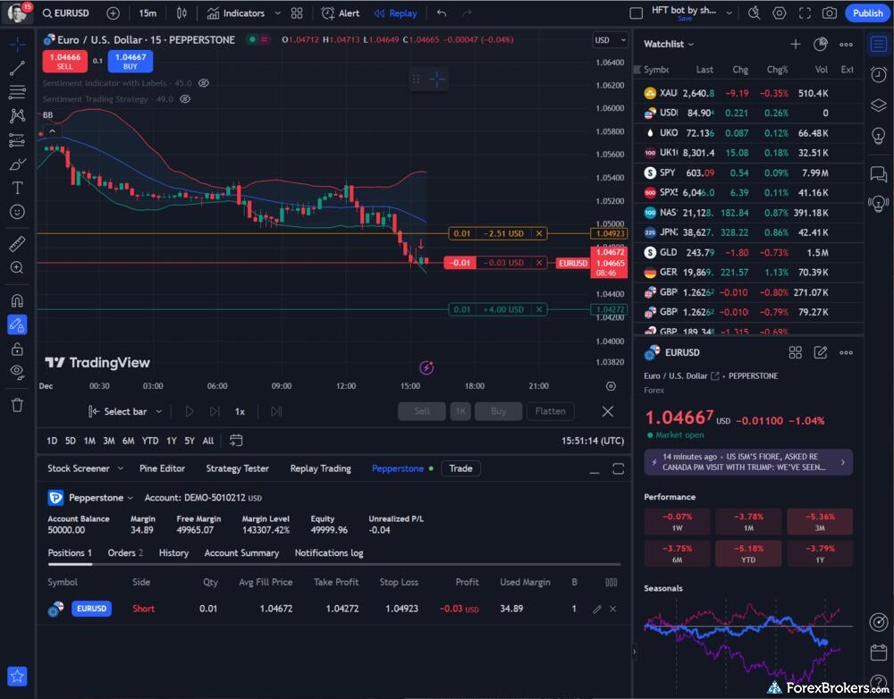Pepperstone and IC Markets both offer forex trading as either CFDs or spot contracts, providing traders with ample opportunities in the forex market. Pepperstone provides access to 1,726 tradeable symbols and 65 forex pairs, while IC Markets offers a larger pool with 3,583 tradeable symbols and 61 forex pairs. Neither platform allows trading of physical exchange-traded securities on U.S. exchanges, but IC Markets stands out by offering these securities on international exchanges, unlike Pepperstone. Both brokers support copy trading and cryptocurrency derivatives, though neither supports the purchase of actual cryptocurrencies.