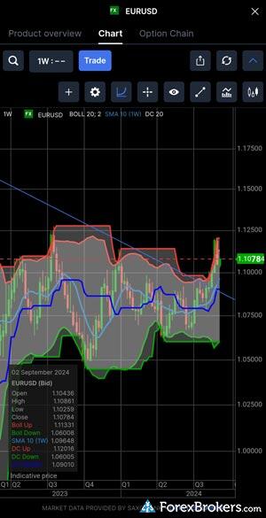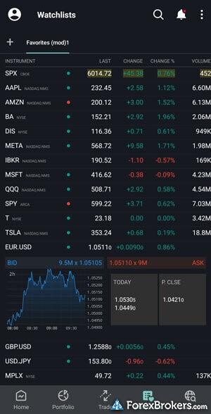 When comparing the mobile trading apps of Interactive Brokers and Saxo, both brokers offer comprehensive tools for on-the-go trading via iPhone and Android devices. They provide crucial features including stock and forex price alerts, watchlist symbol syncing with online accounts, and the ability to create watchlists with real-time quotes. Traders will appreciate the ability to draw trendlines and view various time frames, such as daily and intraday charts, on both apps. However, a distinct difference is that Saxo autosaves chart drawings, while Interactive Brokers does not.