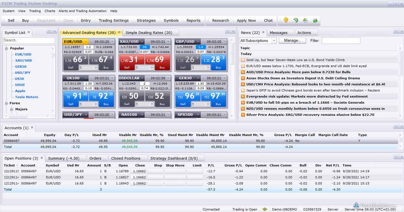 Browse a gallery of screenshots from FXCM's trading platforms, taken by our research team during our product testing.